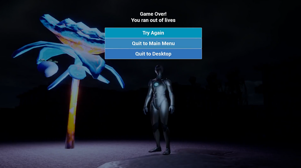 The game starts from a start menu which can trigger the start of the game when clicking play. There are​ tutorial widget blueprints that spawn based on timers and triggers to communicate with the player on how to play. This adds to the overall user experience, and it is all tied together by a win/game over screen that cycles back to the start or main menu.